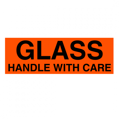 - Message: Bold black “GLASS HANDLE WITH CARE” text on a bright orange background to ensure proper handling