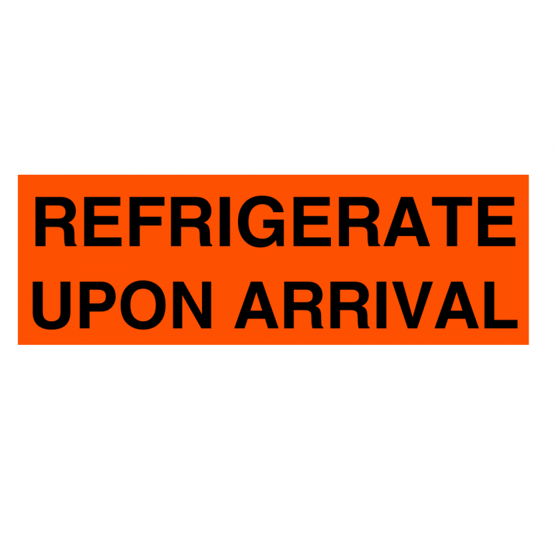 - Message: Bold black “REFRIGERATE UPON ARRIVAL” text on a bright orange background to ensure proper handling