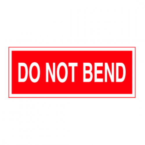 • Message: Bold white “DO NOT BEND” text on a red background to ensure proper handling