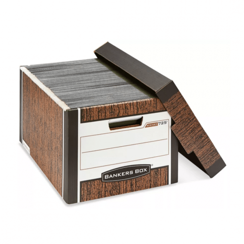 Heavy-Duty Woodgrain File Box with Lid, 15″ x 12″ x 10″ – Bankers Box R-KIVE® Storage